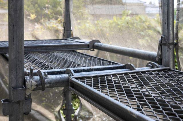 足場は、職人さんたちの安全性を守るために重要です。高所作業になるので、足場がないと不安定で工事が円滑にすすみません。